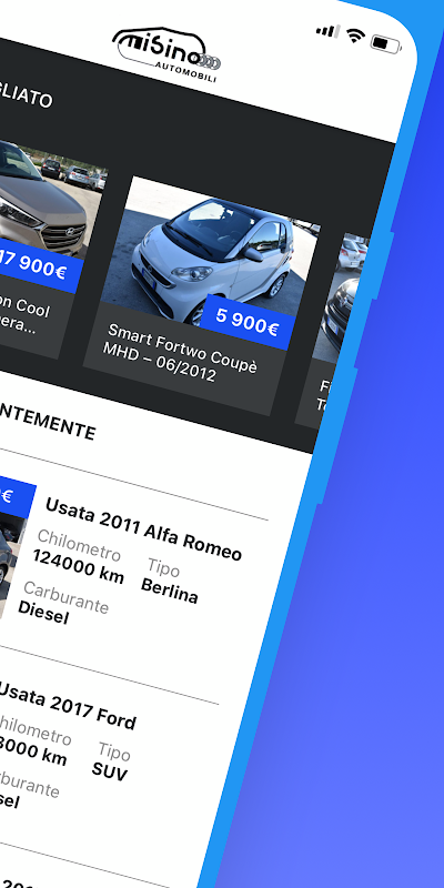 Grazie all'App Misino Auto puoi acquistare le migliori auto garantite usate al miglior prezzo.