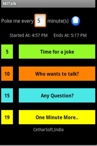 MiTalk is a simple application that silently prompts the speaker at various set intervals by using flashing color bands and mild tones.