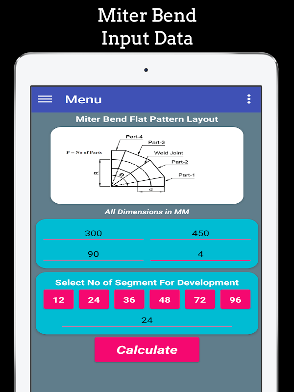 Ta aplikacja jest zbudowana w celu generowania płaskiego oznaczenia układu zgięcia ukośnego, zgięcia segmentowego, zgięcia ciętego Wyprodukowanego zgięcia używanego do wytwarzania, rurociągów, kanałów i izolacji. Ta aplikacja jest bardzo przydatna dla wszystkich pracujących profesjonalistów w dziedzinie produkcji rur, przewodów i izolacji aluminiowej.