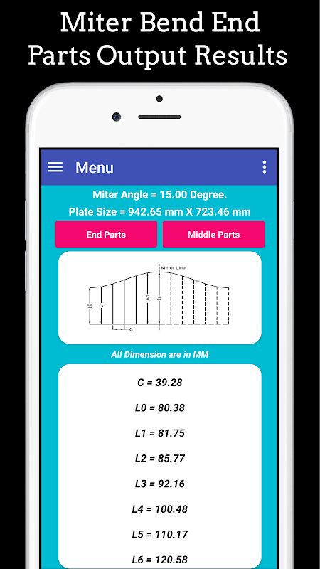 W tej aplikacji wszystkie wymiary są używane w MM do obliczania znakowania, więc wprowadź swoje wymiary wejściowe w MM, aby uzyskać prawidłowe rozwiązanie lub prawidłowy układ zagięcia ukośnego.