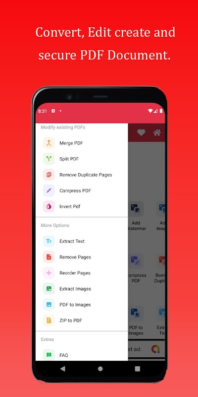 Z łatwością przeglądaj pliki PDF i zarządzaj nimi, korzystając z funkcji przeglądania plików i historii. Ulepsz swoje pliki PDF, dodając hasło, tekst, obracając strony, dodając znak wodny lub wstawiając obrazy. Modyfikuj istniejące pliki PDF, łącząc, dzieląc, odwracając, kompresując i usuwając zduplikowane strony.