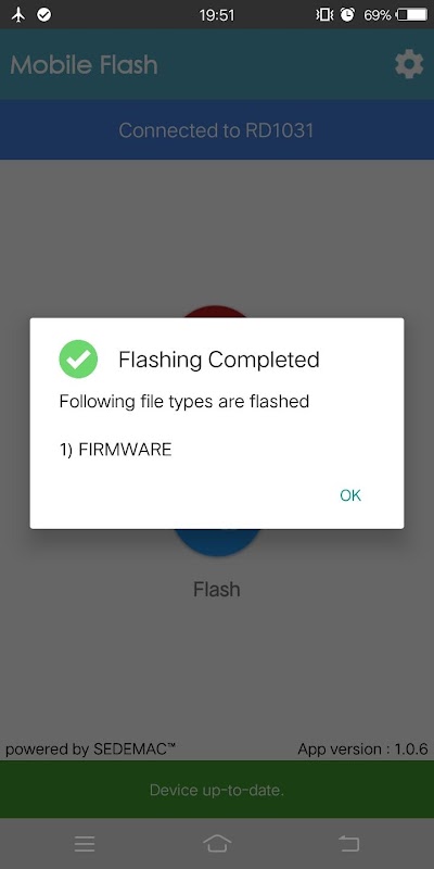 SEDEMAC Mobile Flash jest łatwym w obsłudze, wygodny i aplikacja przenośna aktualizacja oprogramowania dla kontrolerów SEDEMAC użytkownika. To oprogramowanie aktualizacje aplikacji i plików konfiguracyjnych dla kontrolerów on-the-go. Aplikacja łączy się z serwerem w tle i pliki do pobrania * najnowsze pliki firmware i konfiguracji z serwera. Na łączeniu ze sterownikiem, aplikacja uaktualnia kontrolera z najnowszego dostępnego oprogramowania. Ponieważ pliki są pobierane i zapisywane na komórkę, uaktualnienie można zrobić nawet w przypadku braku połączenia z Internetem.