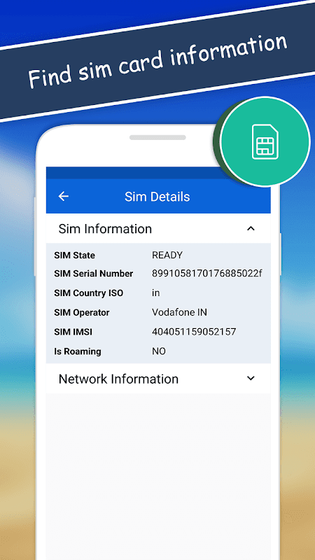 Get sim details of your device like SIM state, SIM serial number, SIM country, SIM operator name, SIM IMSI number.