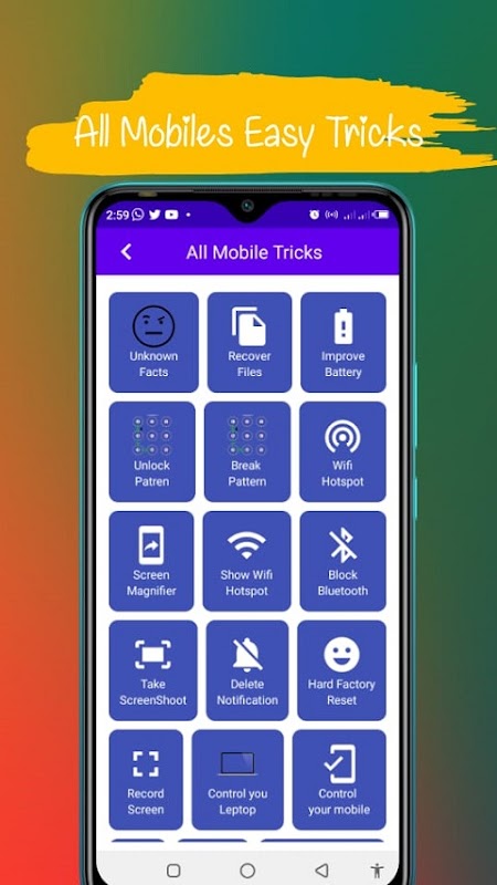 Uzyskaj dostęp do wszystkich kodów Mobile Secrets, aby poznać ukryte informacje o telefonie z Androidem. Ta aplikacja zawiera tajne kody wszystkich marek, takich jak Samsung, Sony, Oppo, Vivo, MI, HTC, Oneplus, Motorola, Realme, Karbonn, Lenovo, LG, Nokia, Huawei itp.