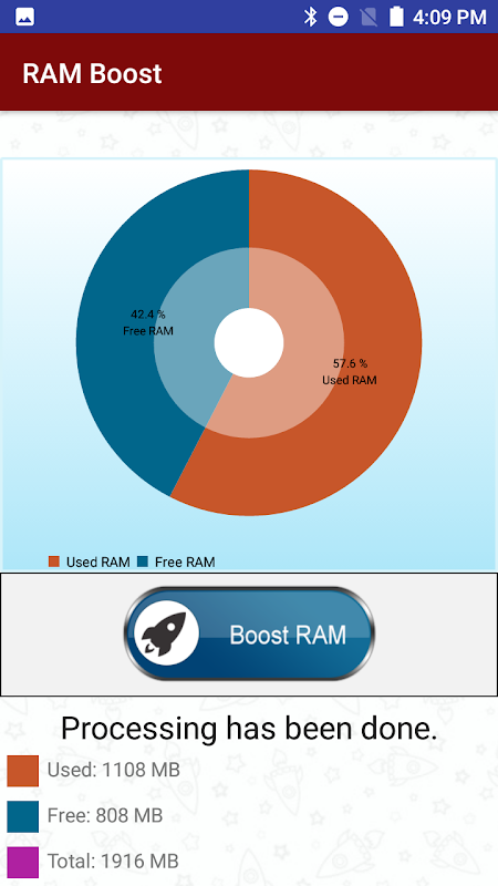 RAM Boost: RAM Boost features Frees up the RAM by stopping or ending the processes that are running in background for no reason and causing lack of available memory, Device Slowdown and Heating issues to your mobile phone.