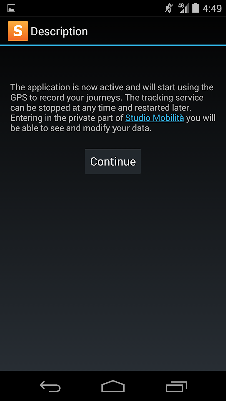 3. Once activated, the app will start using the GPS to register your movements. Whenever you like, you can can stop the tracking service and restart it later.