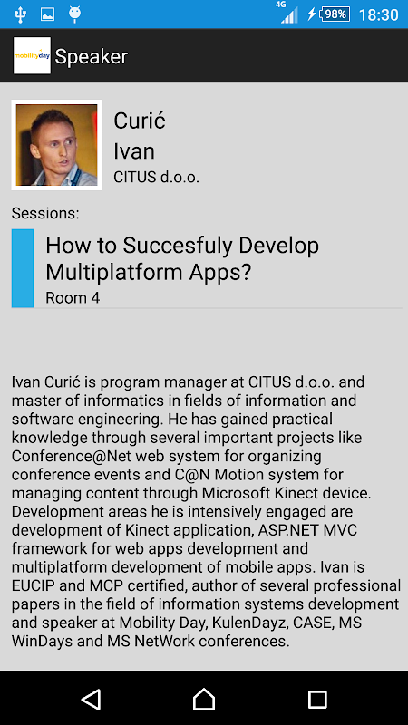 Jest to oficjalna aplikacja Android dla Day Mobilność 2015 konferencji.