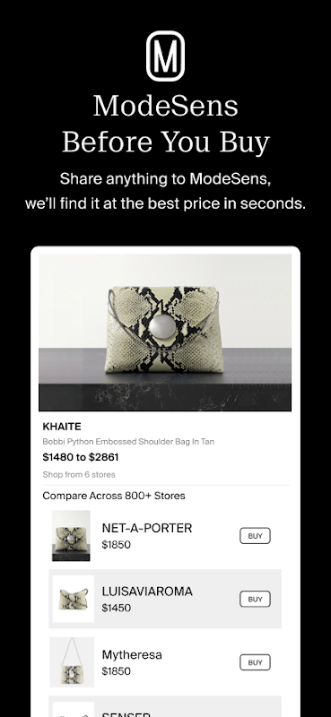 Pożegnaj zgadywanie i powitaj mądrzejsze zakupy. ModeSens to najinteligentniejszy asystent zakupowy na świecie, zaprojektowany, aby pomóc Ci bez wysiłku znaleźć, porównać i zaoszczędzić na luksusowej i designerskiej modzie.