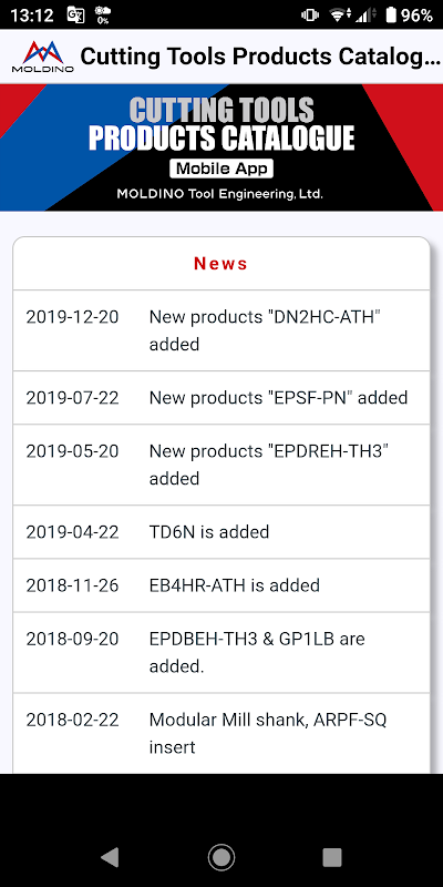 Jest to aplikacja do katalogów narzędzi skrawających MOLDINO
