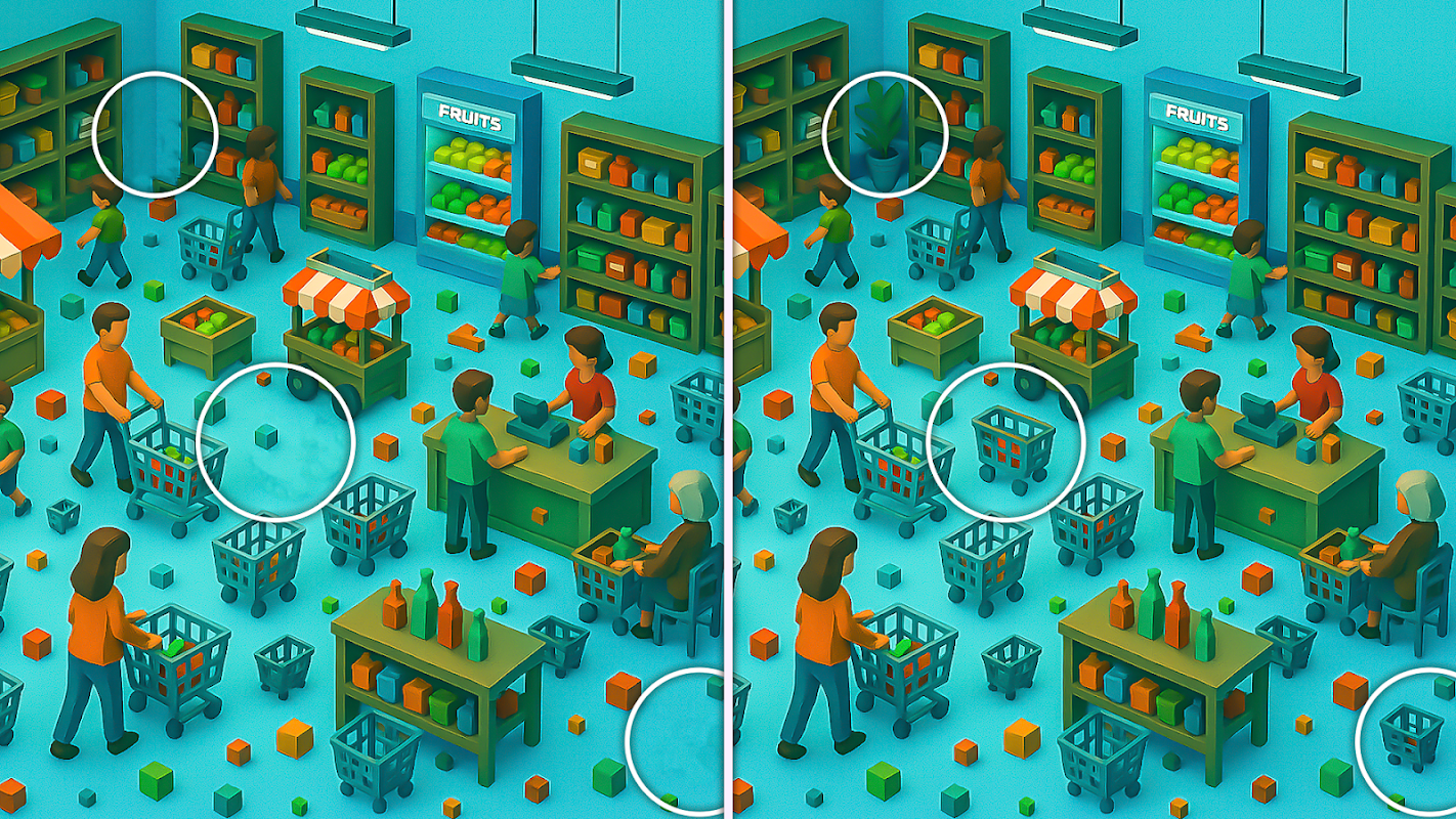 Użyj wskazówek, aby odkryć trudne do znalezienia różnice.