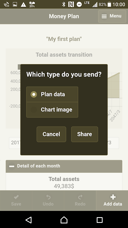 Dzięki tej aplikacji, można zarejestrować swoje pieniądze w / out planu i po prostu sprawdzić przejście łączną kwotę pieniędzy wizualnie.