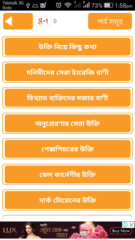 বিভিন্ন মনিষিদের উক্তি নিয়ে সাজানো হয়েছে এই বানী চিরন্তনী নামক বাংলা অ্যাপটি।