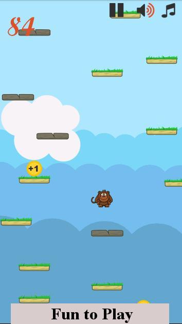 Monkey Jump is a monkey 🐒 character based highly addictive endless jumping game available for android right now. It is an endless jumper game without levels. Once you tap the screen of the game it will start jumping up from one platform to another. Just move the device right or left to move the money jumper to the right or the left respectively.