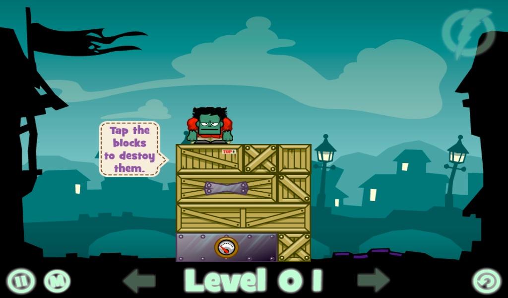 Gdy wszystkie bloki znikną, a potwór znajdzie się na metalowym bloku, naciśnij przycisk ZAPPER, aby usmażyć potwora!