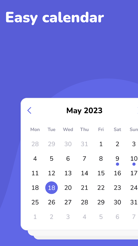 Śledź nastrój, aktywności i wpisy do pamiętnika dzięki prostemu, wbudowanemu kalendarzowi.