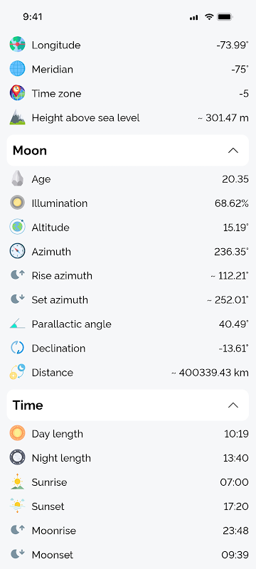 Aplikacja opiera się na precyzyjnych algorytmach matematycznych zdolnych do przetwarzania i wyświetlania informacji o Księżycu z dokładnością do kilku milisekund.
