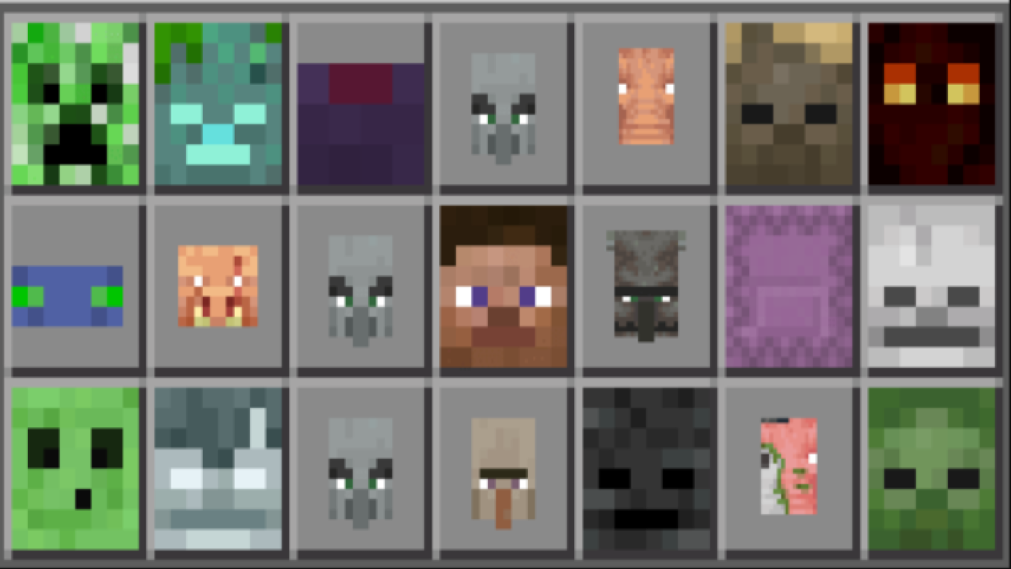 Obecnie obsługuje to wszystkie wrogie moby określone przez Minecraft Gamepedia. Możesz zmieniać się w moby i przybierać ich wygląd, umiejętności i nie tylko, używając przedmiotów, które możesz wytworzyć lub zdobyć, zabijając moba.