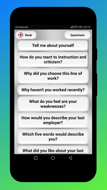 This is a job interview guide apps conisting of interview questions and answers. Unlike daily job alert this app focuses on how to get a job easily by answering the interviews questions asked by interviwer. There are various types of questions are asked in a job interview like tell me about about yourself. If you don't know the answer it will be very difficult for you to answer this tough question. So we have accumulated the most common jon interview questions with answers so that you may prepare yourself with our app and do the best in the interview.