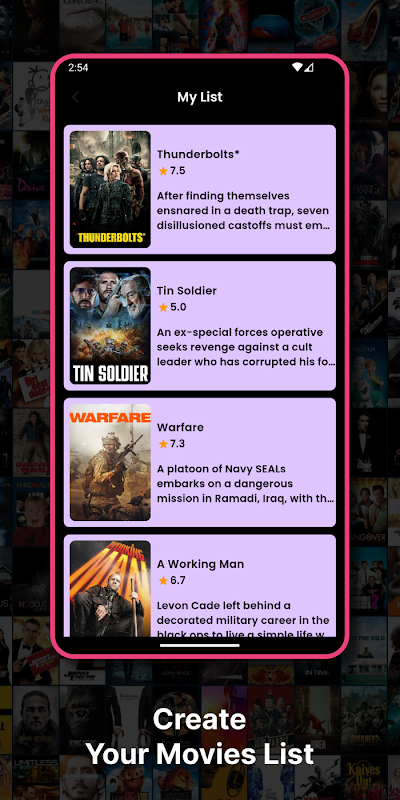 Wszystkie filmy zapisane w Movie Mania są tutaj przechowywane. Łatwo uzyskaj dostęp do swojej osobistej listy do obejrzenia w dowolnym momencie i zaplanuj następny wieczór filmowy.