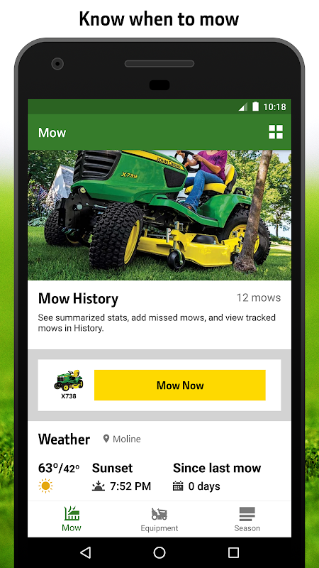 Gotowy do koszenia? Wybierz „Koś teraz”, włóż telefon do kieszeni, a MowerPlus zarejestruje ścieżkę koszenia, całkowity czas koszenia, a także dane dotyczące prędkości i zasięgu podczas sesji koszenia. Porównaj tę kosiarkę z poprzednimi kosiarkami — nawet kosiarkami z poprzednich sezonów — i uzyskaj wgląd w wydajność koszenia.