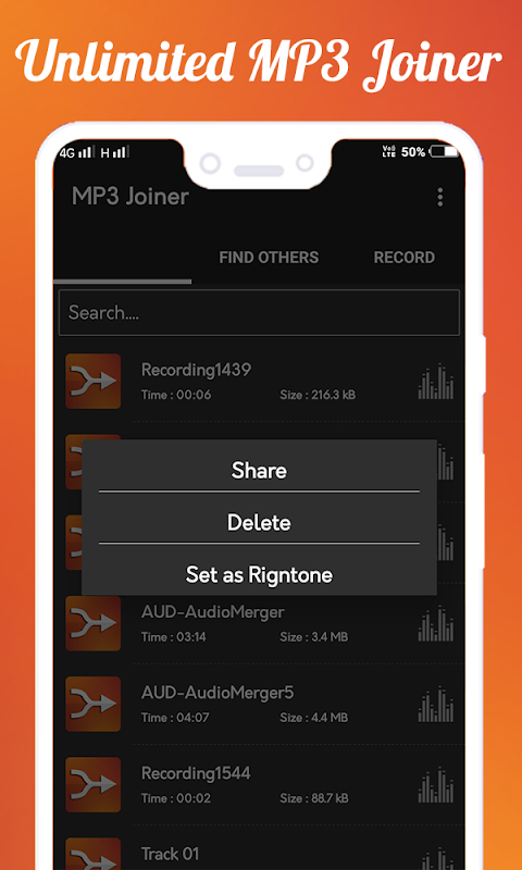 Merge two or more MP3 files into a single song. Easily select multiple songs to merge. Drag and drop to change the location of songs, swipe to delete a song from the merging list. Listen to the song before merge.