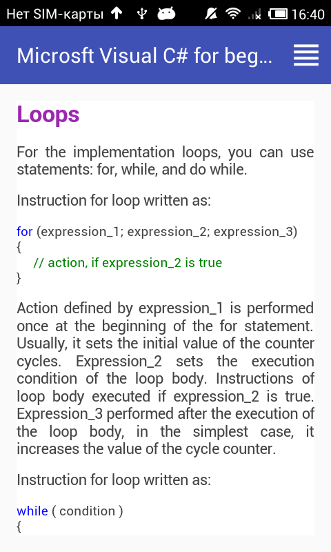 E-book jest zbiorem przykładowych programów w języku C #. Programy o różnym stopniu złożoności - aplikacji konsolowych wykazać korzystania z podstawowych instrukcji C #, operacje wejścia-wyjścia, praca z tablicami i list.