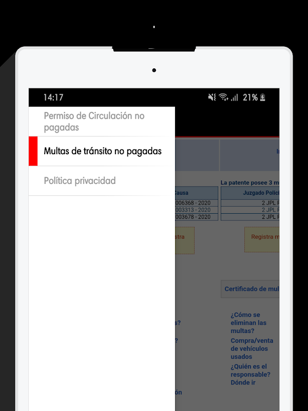 Szybko dowiedz się, dlaczego zostałeś ukarany grzywną, wyszukaj słowo kluczowe, aby sprawdzić, czy nie łamiesz prawa, i zapoznaj się z wszelkiego rodzaju karami nałożonymi na wszystkie pojazdy w Republice Chile.