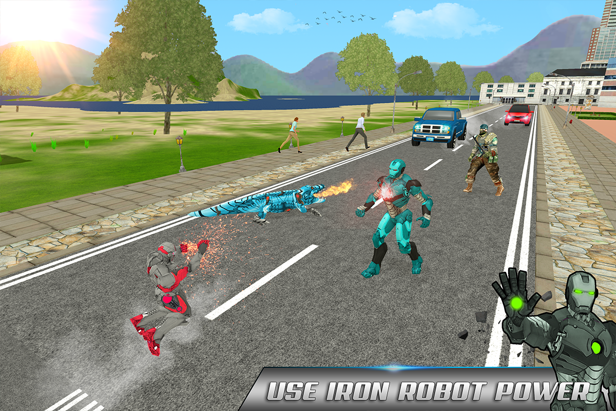 When you fights with these brutes gangster robots with the help of your super power in this multi iron crocodile robot vs futuristic robots simulator. You have option to fight with your multi Iron hero or you can also change into dangerous Crocodile robot. These new robot fights are going to happen in your city so be very conscious of them. These futuristic robot battle is very dangerous for survival of mankind so try to go as far as possible from these places where these monster robots going to fight against each other. So quickly find a safe hiding place and get out of this robot fighting simulation.