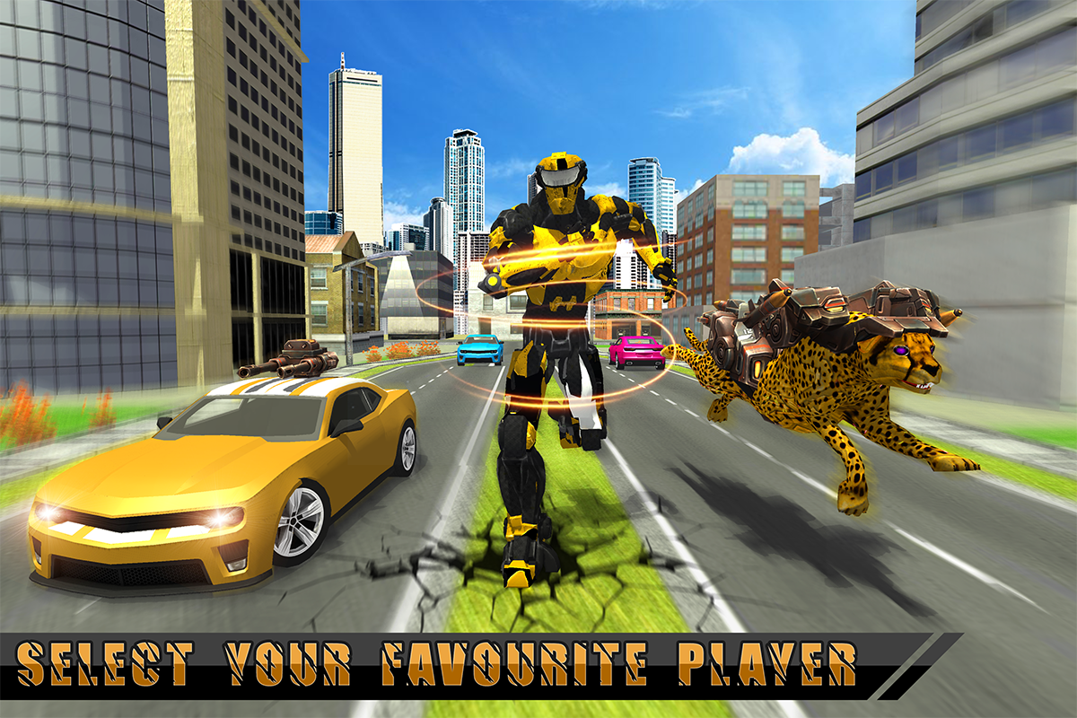 It’s time to exploit as action robot games of robotic cheetah battle who will blow the sci-fi powers of the virtual robot to smash the enemies in this multi-robotic cheetah car transform simulator. You can fight with city evil robots and save innocent civilians from these futuristic city gangsters. Use your conversion powers to beat these villains in multi war games of 2019.