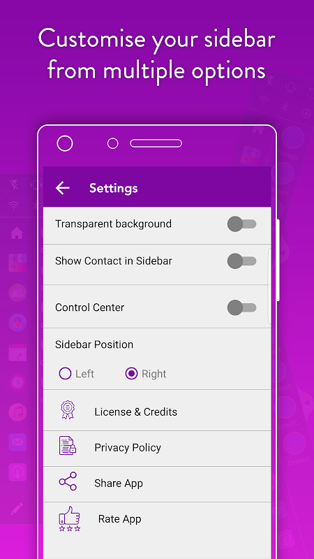 Teraz możesz łatwo uzyskać dostęp do swoich ulubionych aplikacji i kontaktów za pomocą paska bocznego wielu okien. Pasek boczny z wieloma oknami nakłada się na wszystkie ekrany w telefonie komórkowym. Zawsze umieszcza się na wszystkich ekranach mobilnych aplikacji lub gier, dzięki czemu można uzyskać do niego dostęp w dowolnym momencie. Nie musisz opuszczać ani minimalizować żadnego bieżącego ekranu, aby uzyskać dostęp do paska bocznego wielu okien.
