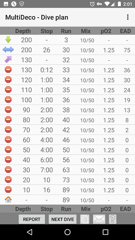 Multideco prezentuje różne modele dekompresyjne w jednej aplikacji. Wybierz z: VPM-B, VPM-B / E, VPM-B/FBO, ZHL-16B, ZHL-16C, GF, GFS.