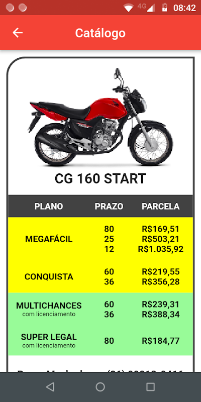 Wprowadza kalkulator finansowania, umożliwiając konsultantowi ds. Sprzedaży porównanie zakupu motocykla za pośrednictwem finansowania lub konsorcjum.