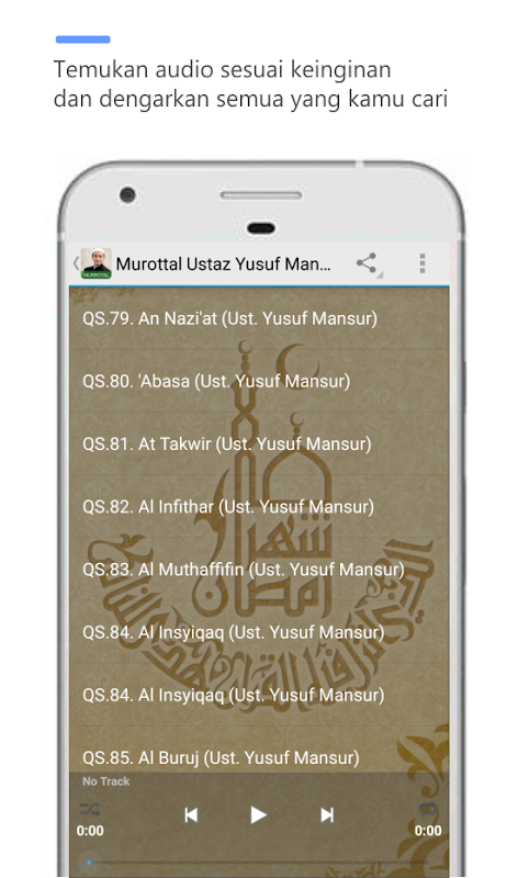 Aplikasi Murottal Ustadz Yusuf Mansur . Anda dapat mendengarkannya secara online