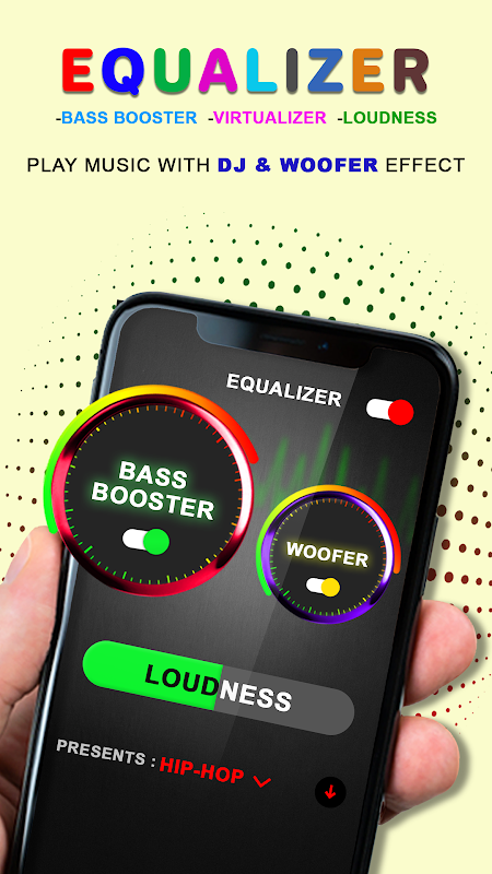 Popraw dźwięk muzyki za pomocą wzmacniacza basów, głośności, wirtualizacji i korektora. Popraw jakość dźwięku i muzyki swojej piosenki na swoim ulubionym odtwarzaczu muzycznym.