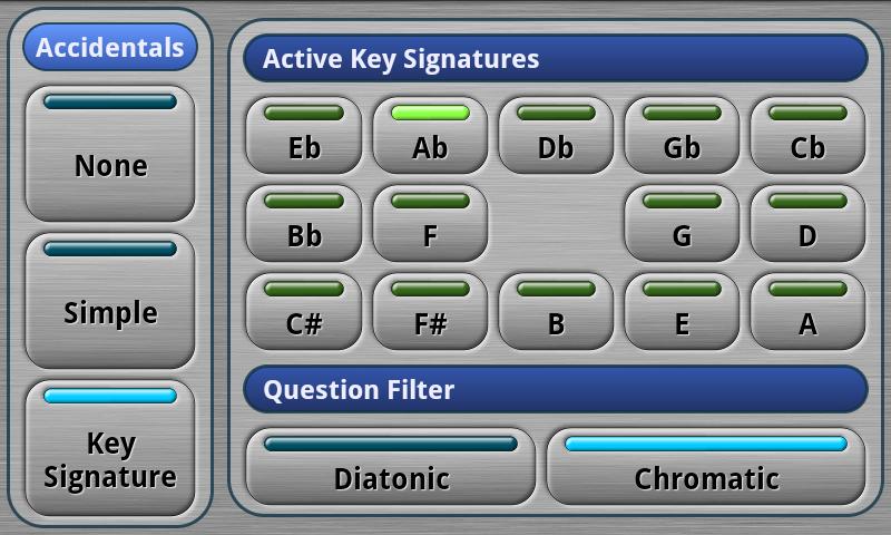Proste chromatyczne zwraca uwagi naturalne lub przypadkowe. Użytkownik może wybierać pomiędzy tylko śruty tylko mieszkań lub obu.