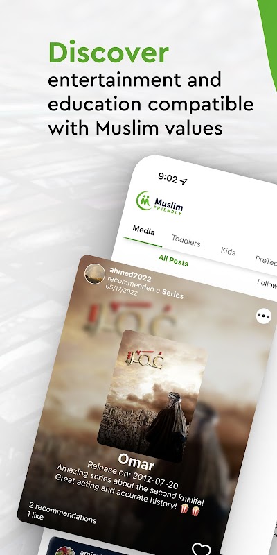 Aplikacja społecznościowa, która pomaga odkrywać rekomendacje mediów od osób, które wyznają islamskie wartości. Znajdź filmy, książki, programy telewizyjne, seriale przesyłane strumieniowo, filmy dokumentalne, podcasty i nie tylko. Uzyskaj recenzje mediów z perspektywy muzułmańskiej. Ta aplikacja ułatwi Ci przynoszenie pożytku innym, udostępniając korzystne i interesujące treści użytkownikom na całym świecie. Muslim-Friendly to rewolucyjna aplikacja, która zapewnia kanał główny, który wyświetla tylko to, co Cię interesuje. Obejmuje forum społeczności, na którym możesz poprosić o konkretne rekomendacje dla dorosłych, dzieci, nastolatków, małych dzieci i nie tylko. Śledź użytkowników i bądź na bieżąco z ich rekomendacjami. Dołącz do społeczności już dziś!