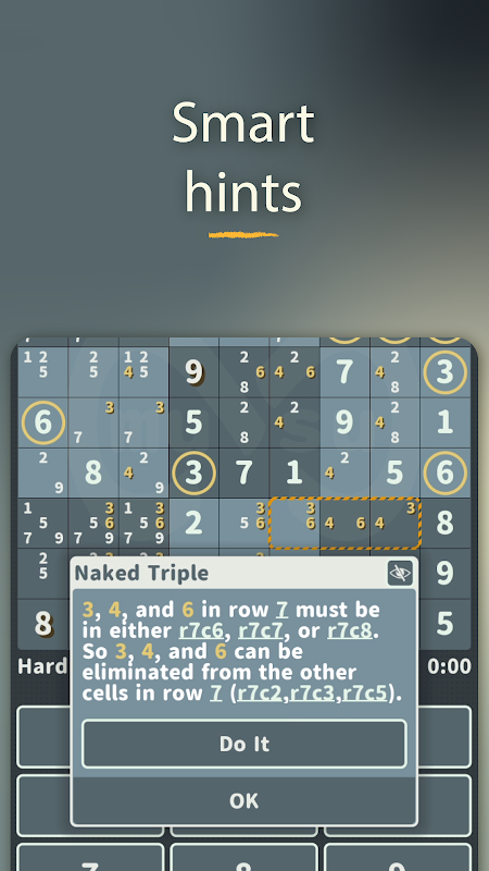 • Utknąłeś w zagadce? Inteligentne wskazówki analizują Twoją łamigłówkę jak prawdziwy mistrz sudoku i mogą dostarczyć wszystkiego, od podstawowych wskazówek po rozwiązanie XY-Wing.