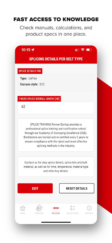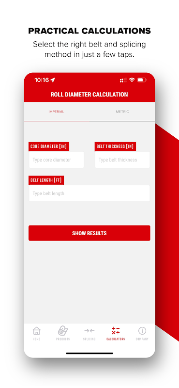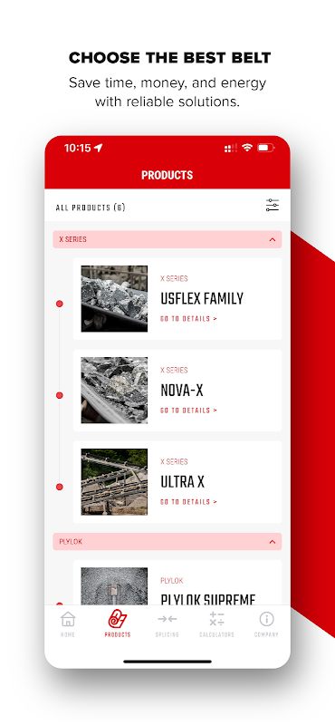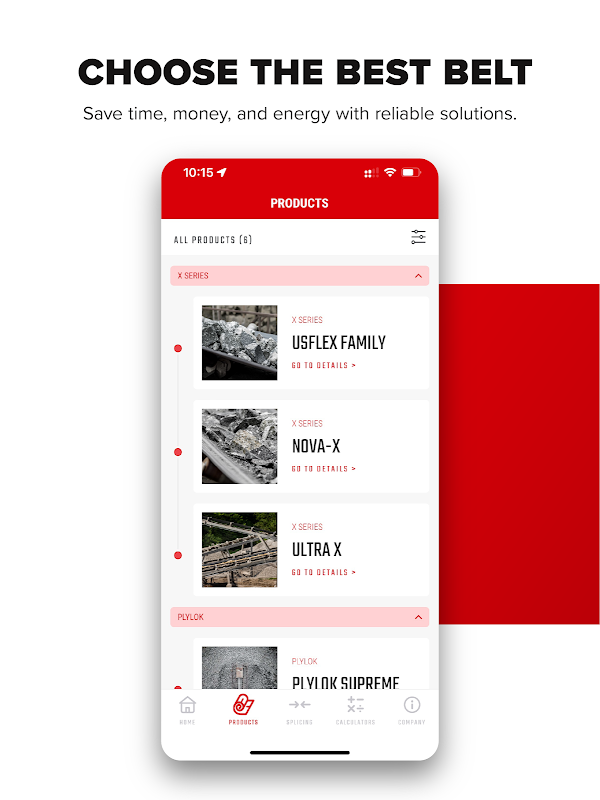 Aplikacja My Belt to doskonałe narzędzie dla profesjonalistów poszukujących natychmiastowego dostępu do informacji technicznych dotyczących taśm przenośnikowych i obliczeń na miejscu. Nieważne, gdzie jesteś, ta aplikacja pomoże Ci szybko i skutecznie podejmować świadome decyzje. Wszechstronny dostęp do produktów – przejrzyj naszą pełną ofertę taśm przenośnikowych i instrukcji łączenia.