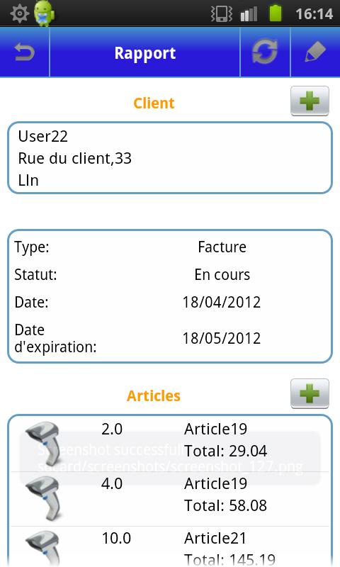 - All pdfs generated are saved on your sd card: sdcard/CamelDroid/Invoices/Export