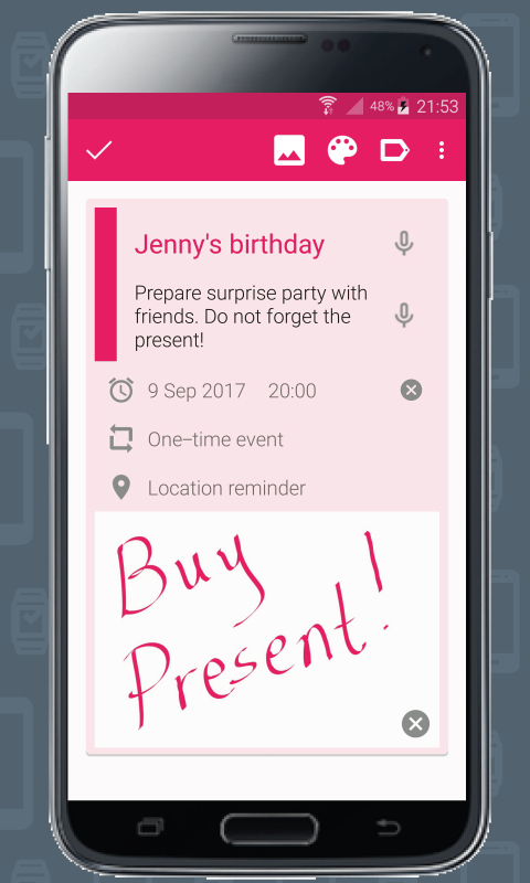 • Zobacz swoje notatki na ekranie głównym i stworzyć tam nowe nuty przez piękny widget.
