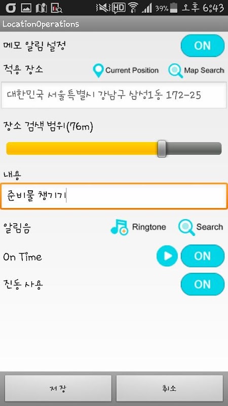 If you set the location where you want to notify, this app indicates alarm with memo popup automatically.