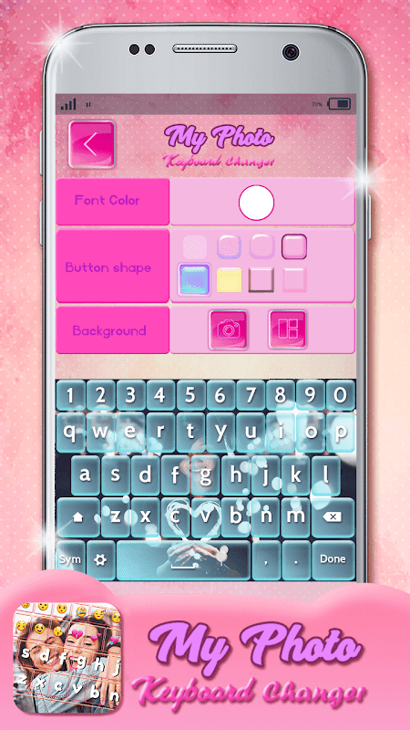 📷 Do you like classy themes? Our latest 💘 My Photo Keyboard Changer💘 allows you to design stylish keyboard themes by letting you place any of your cute pictures in the background of your keypad! And that's not all – colorful keyboard emoji such as water bubbles, pink teddy bears and fluffy hearts will give your text messages a funny undertone! Text your best friend using your “cute pic keyboard with smileys” and let her decrypt your funny message! Download virtual “photo keyboard themes” and prepare for the incredible phone screen makeover - enjoy every second of instant messaging with your cute emoticon keyboard style!