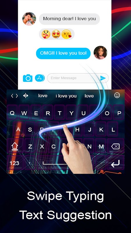 Darmowe motywy klawiatury fotograficznej ze stylowym tłem i fajnymi emotikonami całkowicie zmienią sposób, w jaki piszesz specjalne wiadomości tekstowe. Klawiatura tęczowa Moja klawiatura fotograficzna oferuje niezrównany poziom dostosowywania. Klawiatura obrazkowa dla Androida to dostosowana klawiatura z motywami i czcionkami, która umożliwia wyświetlanie neonowych efektów tekstowych na animowanej klawiaturze. Fajna kolorowa klawiatura będzie dla Ciebie świetną zabawą, jeśli należysz do osób, które uważają, że dostosowanie telefonu ma znaczenie.