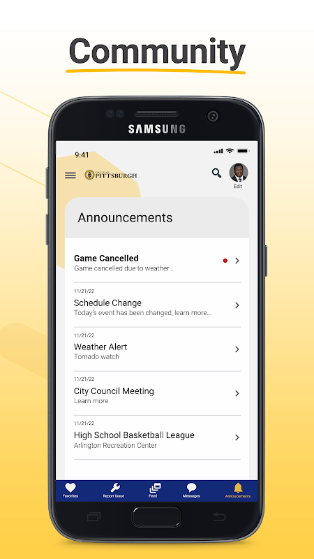 Aplikacja My Pittsburgh będzie również używana do informowania społeczności o ogłoszeniach, sytuacjach awaryjnych i nie tylko poprzez powiadomienia i alerty.