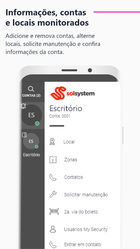 MySolsystem to aplikacja mobilna, w której monitorowany klient może śledzić bezpośrednio za pomocą telefonu komórkowego lub tabletu wszystkie działania swojego systemu bezpieczeństwa. Poprzez aplikację można poznać stan centrali alarmowej, załączyć i rozbroić ją, podglądać na żywo z kamer, sprawdzać zdarzenia. To bezpieczeństwo, którego potrzebujesz w dłoni.