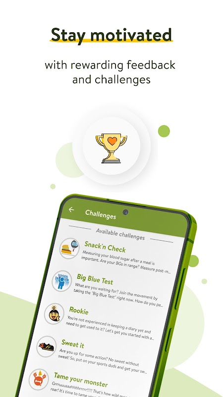 • Easy and personalised dashboard (diet, meds, carb intake, blood glucose levels and more).