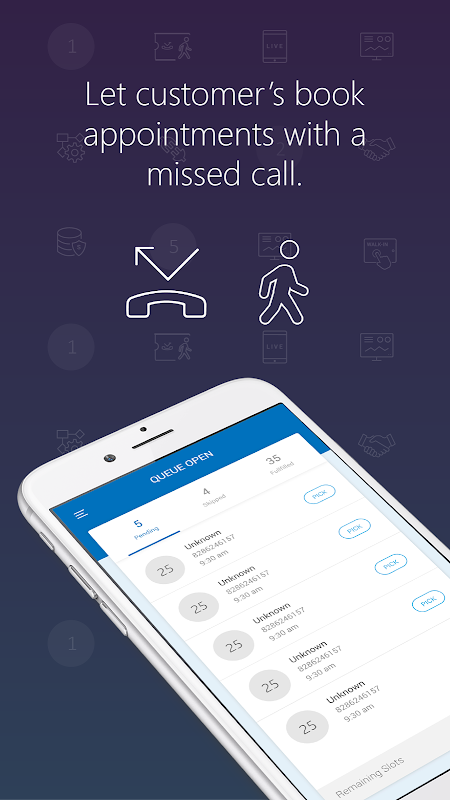 Install the myToken Queue Manager app, start booking appointments through walk-in and also let you patience give missed calls on the phone to fix up appointments automatically.