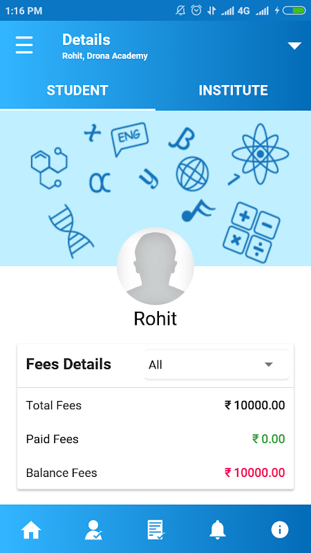 Drona cloud academy is a platform made for schools, colleges and private tuition classes to share information about the student's performance with students and with their parents. This is a single platform which gives information on attendances, tests, holidays and fees details of the students.