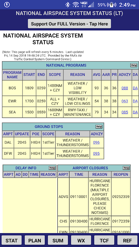 While there are many Flight Tracker apps available, this app provides a collection of links and resources providing real-time status of the US National Airspace System. Information and links are derived from the AIR TRAFFIC CONTROL SYSTEM COMMAND CENTER (ATCSCC) web page as well as other government aviation sources.
