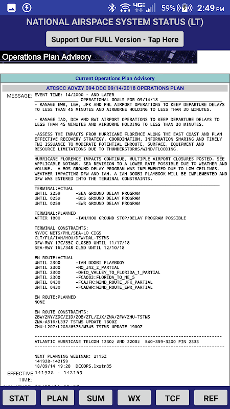 PLAN - Current Operations Plan Advisory (from the ATCSCC)